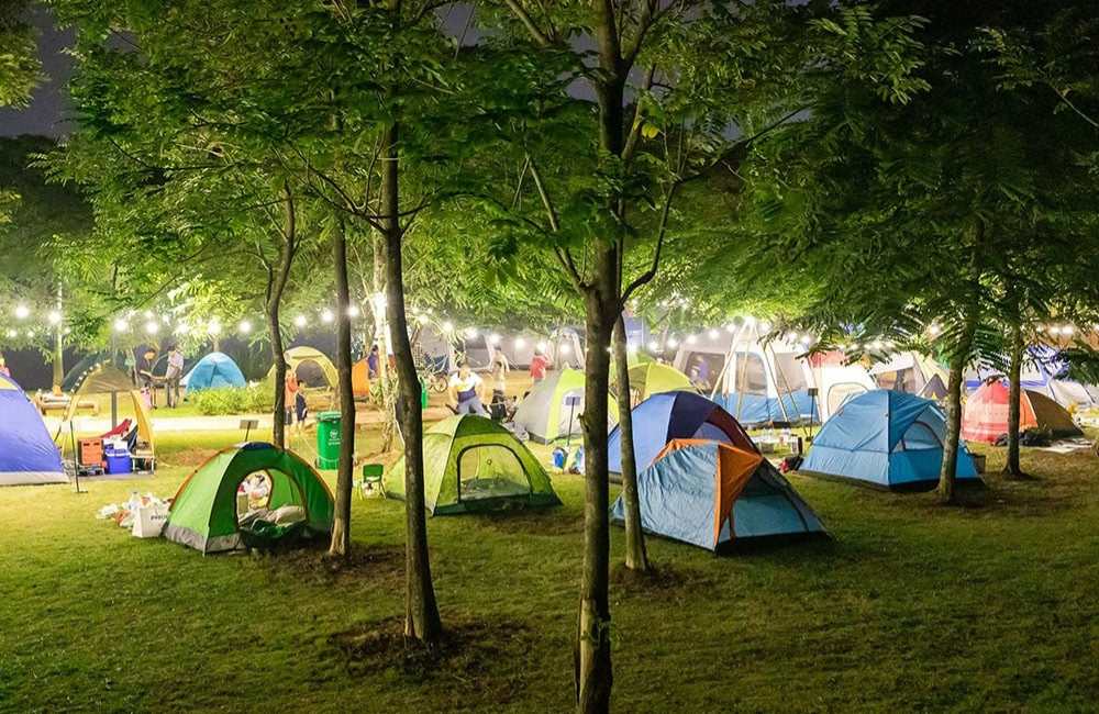 Còn nếu bạn muốn thử cảm giác cắm trại qua đêm, công viên vẫn hỗ trợ nhưng cần báo trước với ban quản lý để đảm bảo an toàn. Cắm trại ở đây về đêm thực sự là một trải nghiệm đáng nhớ: gió thổi mát rượi, tiếng dế kêu và ánh đèn thành phố xa xa phản chiếu dưới mặt hồ – cảm giác chill khỏi bàn.