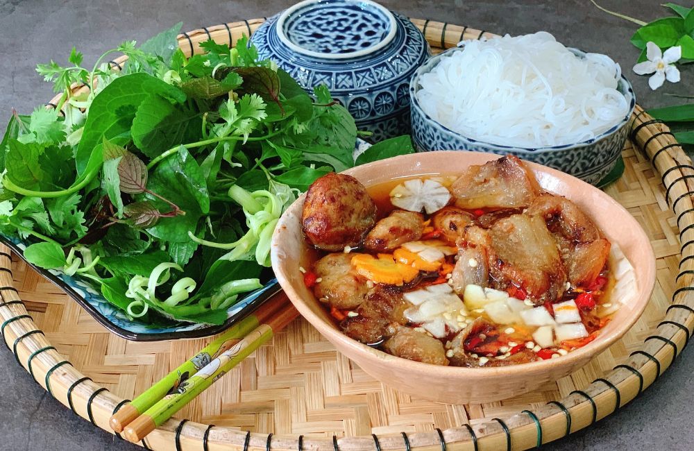 - Bún Chả: Được xem là “linh hồn” của ẩm thực Hà Nội. Bún chả gồm những miếng chả thịt lợn nướng thơm lừng, chả lá lốt hoặc chả viên, ăn kèm bún tươi, rau sống và nước chấm chua ngọt đặc trưng.
